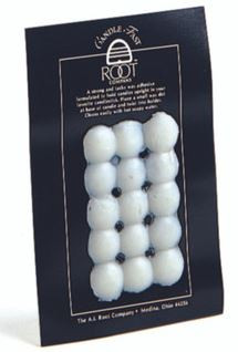 A strong and tacky wax adhesive formulated to hold Dinner Candles upright in your favorite candlestick. Place a small wax dot at base of the candle and twist into candle holder. 15 wax dots per sheet.