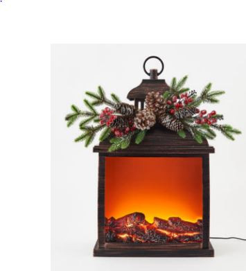 Extra Large Black Fire Light Lantern. 14"W x 23"H. Movement looks like real fire burning. Runs on 3-C Batteries (not included) Electrical port but adapter not included. Turn Switch to the "On" position. When lantern switch is in the "on" position the repeating timer is automatically set to keep Lantern light on fo 5 hours and then turn off. If switch is left in the "On" positon the Lantern will automatically turn on and off every day at the same time and will repeat daily as long as the switch is left "On". Remove the holiday decoration and use all winter.