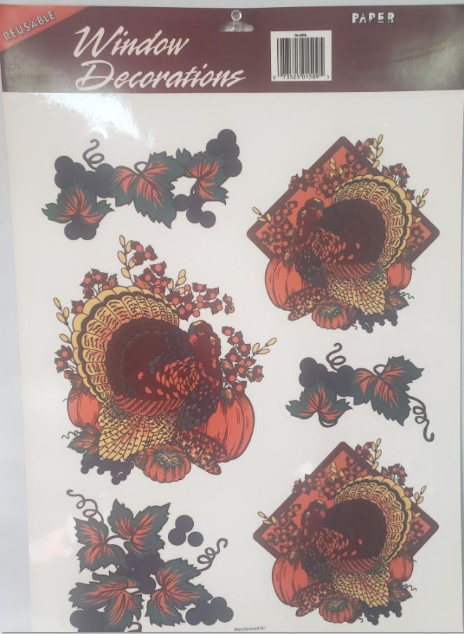 - WINDOW DECORATIONS THANKSGIVING TURKEYS LEAVES