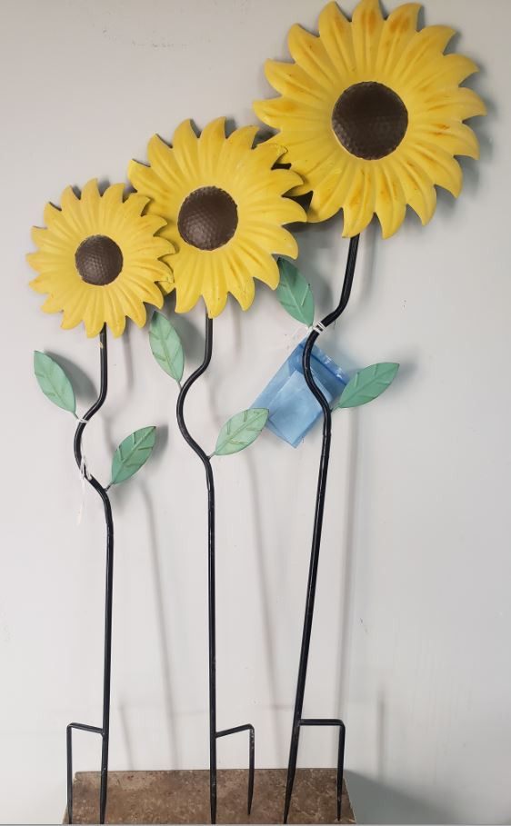 Sunflower metal painted garden stakes. 3 sizes. One approx. 33", one approx 36" and one approx.41".
