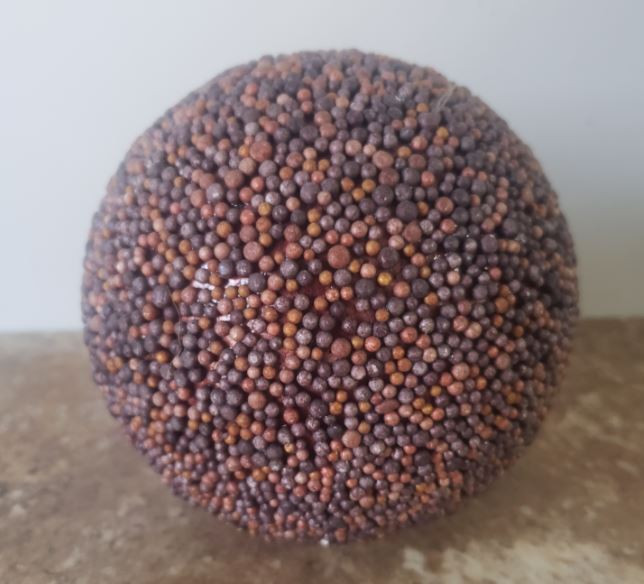 Seed Ball covered with mini seeds. Colors are Cooper, Brown and Dk Purple. Approx. 6" Diameter.
