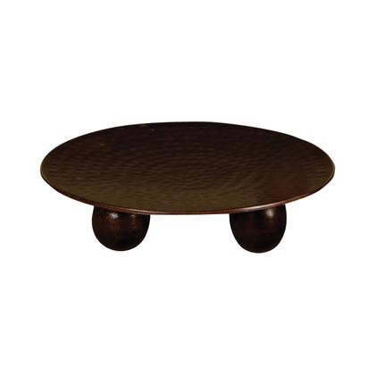 Brown metal hobnail design Candle plate Balfour. Approx. 6" diameterl . Hpprox. 1.5"H . Has 3 ball feet on the bottom. Great for pillar candles up to 6" Diameter. Also great to use as a base for a unity candle or a base for a vase. Made in India.