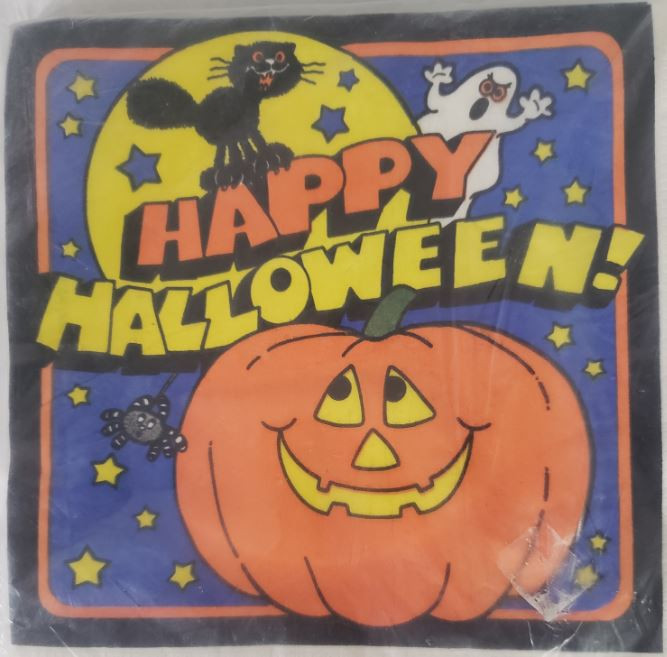 Happy Halloween Luncheon Napkins. Jack-o-Lantern, black Cat and Ghost design. 16- 2 Ply napkins per package.