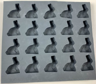 Candy and Craft Mold. 3 Bunny rabbit designs carrying baskets. Great for chocolate, candy melts, butter, sugar, clay, plaster and other craft projects. Each cavity approx. 3.25" tall. FDA approved and BPT Lead-free. Made in the United States.