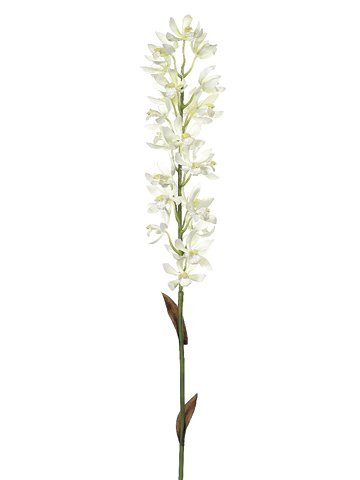 Poly-silk spray of Mokara Vanda Orchid. Color is Cream / White. Approx 30"L. The Blooms are appro. 2.5"D. Cut apart to make Corsages and Bouttoneires.