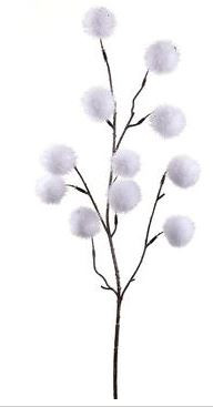 White Chestnut Glitter Pods. Approx. 30"L. The Largest Pods are approx.1.5" Diameter. Looke like mini snowballs-fuzzy and lightly glittered.