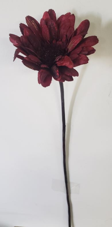 GERBERA DAISY BURGUNDY GLITTERED 26"