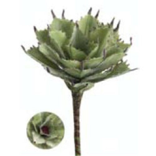 Artificial Agave succulent Pick. Shades of green with a brown center. Approx. 8"L. the succulent is approx. 6" diameter. The actual color is more gray/green than the photo.