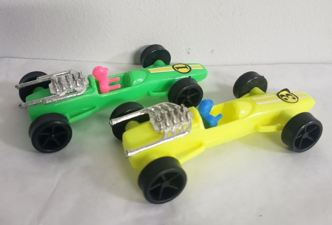Assorted colors Plastic race car racer. Use on cakes or for party favors. Sold eachs.