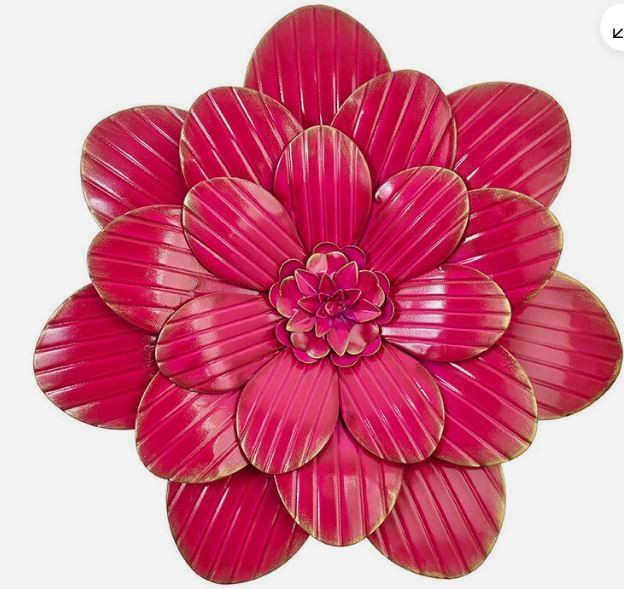Metal Pink Flower wall hanging. Approx 17.5" diameter.