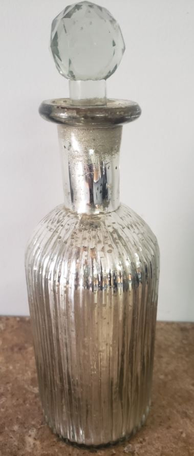 - BOTTLE MERCURY GLASS W/ STOPPER 9"