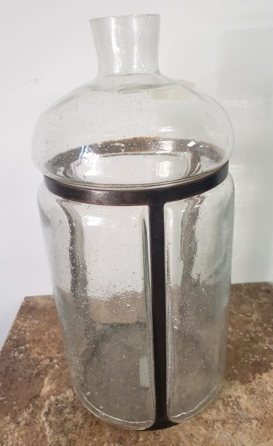 BOTTLE VASE WITH METAL FRAME 14.5"