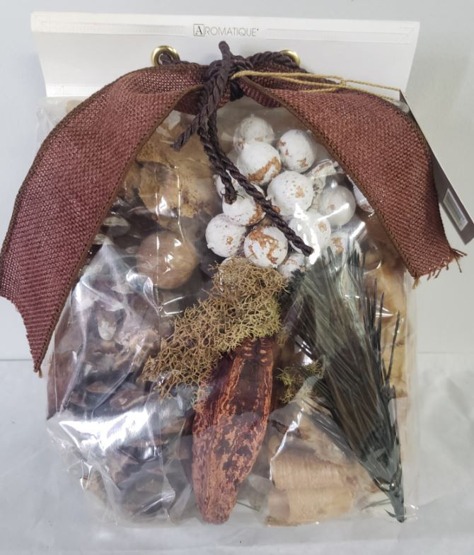 Bourbon & Bergamot Decorative Fragrance is the ideal fragrance in any space. The Standard Bag is our iconic Decorative Fragrance Style. Using sponge mushrooms, rattan berries, and pinecones, this decorative fragrance adds a warm, comforting touch to any space. 9 oz. decorative Bag. Made in the U.S.A.